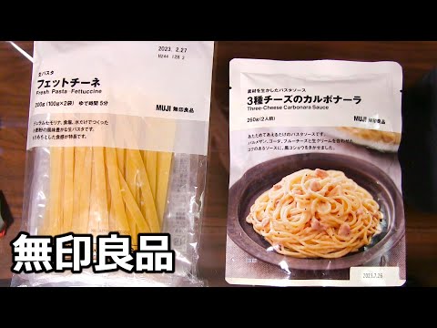 無印良品で買ってきた生フェットチーネとカルボナーラのソースです。
