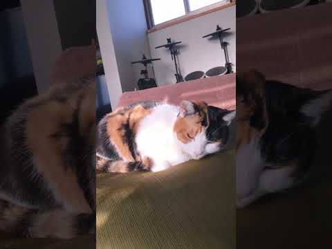 天気のいい日は座布団でまったりしてる三毛美。